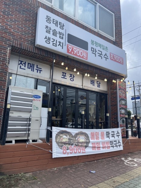 삼화의 어느 큰 사거리 코너에 위치한 오늘의 맛집 동막골, 동태와 막국수 전문점이라는 간판을 늘 보아오긴 했지만 가볼까 말까를 망설이기만 하며 지나치기 일쑤였다. 날이 제법 쌀쌀해지니 동태탕이 급 땡겨 이번엔 그냥 지나치지 못하고 들어가 본다.