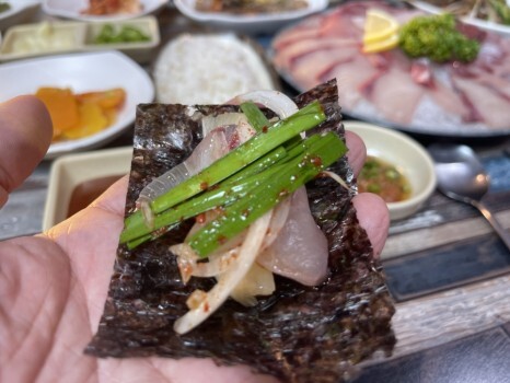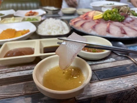 날 것이 아직은 무리인 아이들은 조기조림만 있으면 밥한공기 뚝딱이다. 방어시즌이라도 아이가 먹을 수 있는 반찬이 있으니 아이와 함께 가도 좋다.
