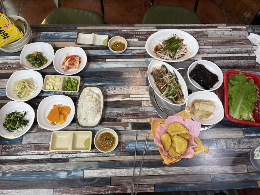 고구마튀김, 조기조림 등 곁들일 거리가 많이 나온다.