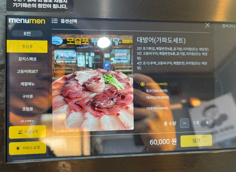 오늘의 주문은 대방어(가파도세트,소)로 완료!
