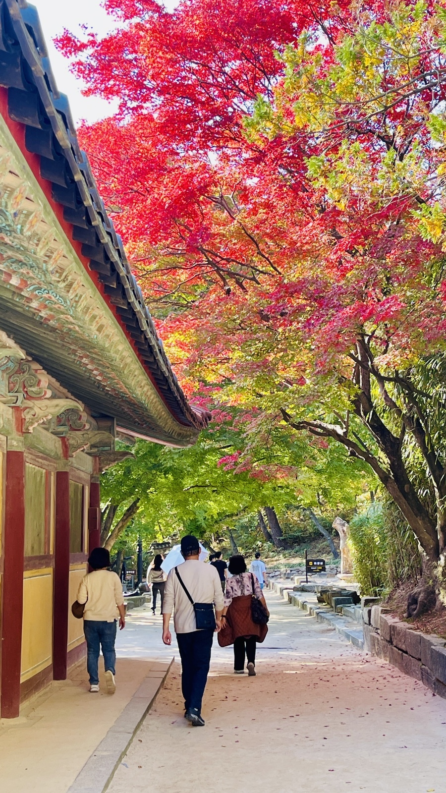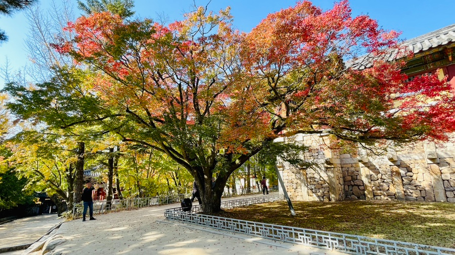 불국사 단풍 최고의 명소를 뽑으라면, 나는 이곳으로 정하고 싶다. 그 어느 곳보다도 제일 예뻤고, 인증샷 찍기에도 참 좋았던 곳. 모르는 사람들은 그저 지나가기 바빴지만 아는 사람은 전부 멈추게 되는 사진명소이다.
