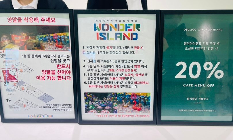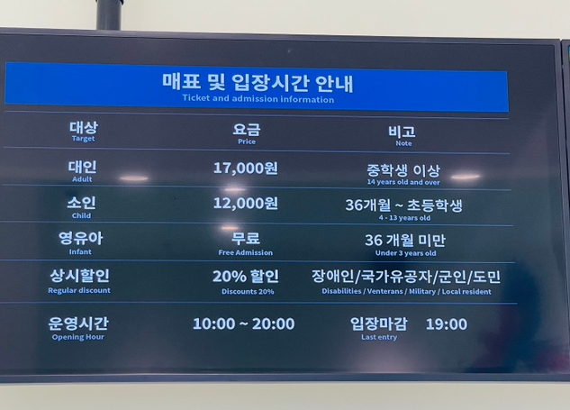 입장료가 저렴한 편이 아니어서 잠시 망설이니 오늘까지 진행 중인 할인 이벤트를 알려줘서 아이와 함께 2만 원에 입장 성공! 방문 전 할인 정보는 필히 알아보는 것이 절약법수!