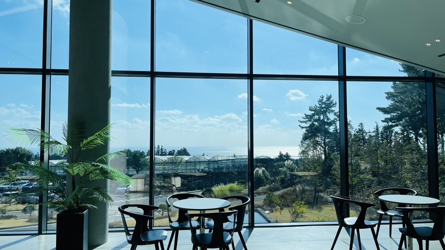 서귀포 대형 베이커리카페 서울앵무새 제주점은 2개 층으로 구성되어 층고가 높고 통창 개방감도 좋아 주변 자연 풍경을 한눈에 보여 힐링 할 수 있어서 좋다. 따뜻한 햇살 아래 휴식을 취할 수 있는 1층과 벽화와 거울 포토존에서 사진을 찍으며 힐링할 수 있는 2층. 게다가 야외 테라스도 있어, 숲속에서 즐기는 여유도 좋은 곳이다.