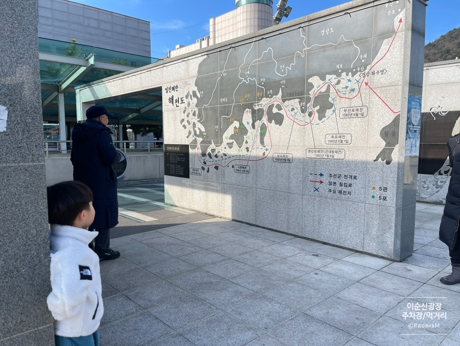 이순신광장맛집은 우리와 거리가 멀었지만, 광장 한편에 마련되어 있는 이순신장군의 해전이야기에 대한 정보를 보며 아이와 함께 역사투어를 한참동안이나 했다.