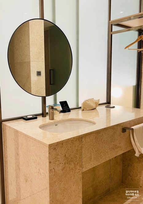 욕실 앞으로 세면대랑 화장거울이 준비되어 있고, 수건도 꽤 넉넉한 편이다. 무선충전기를 갖춰 편의성도 좋고, 변기와 샤워실이 분리되어 있어 좋은데, 욕조가 없는 것이 살짝 아쉬웠다. 어메니티는 별도로 없으며 샤워 3종 세트만 준비되어 있다. 개인 위생용품만 준비해 가면 된다.