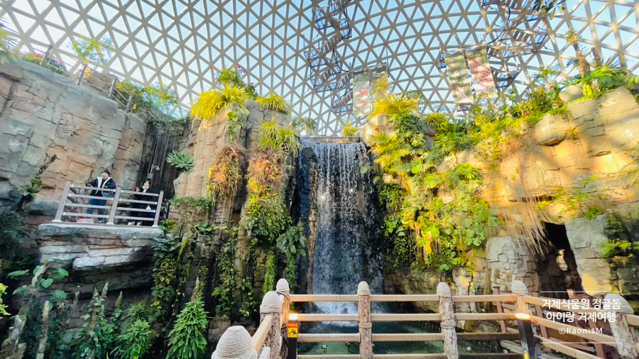 아이랑 가볼만한 거제여행지로서 거제식물원 정글돔, 전망대 위에 올라서 바라보는 전경은 감탄을 자아낸다. 함께 사진 찍고, 산책로마다 표기된 식물이름을 찾아보는 재미도 있다. 상층부에서 폭포를 돌아 하층부로 내려오다보면 한시간은 훌쩍 지나간다.