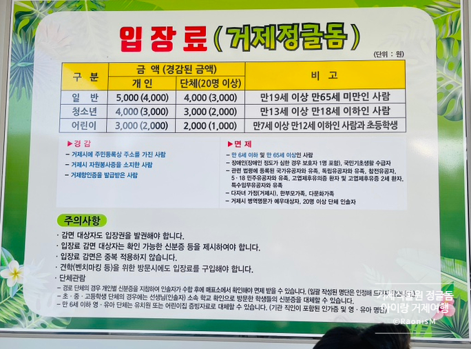 입장료와 유의사항