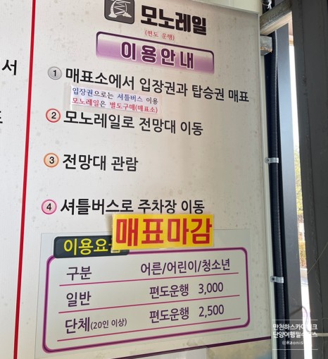 - 전망대 : 어른 4,000원 / 그 외 3,000원