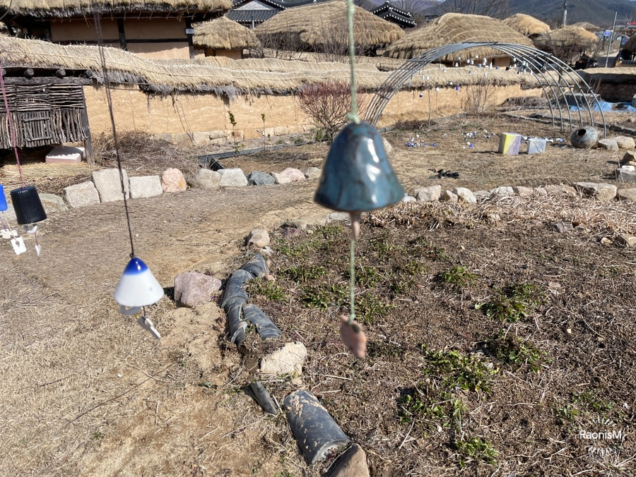 교회를 떠나 논밭길을 따라 시골풍경을 감상하며 오롯이 우리의 발자국소리만 들릴뿐이다. 그렇게 한참을 걷다보면 청아한 풍경소리가 들려오는데... 가까이 가보니 예쁜 풍경을 만들 수 있는 이색체험공간도 나타난다. 하회탈 기념품 등 마을 안쪽엔 카페와 기념품가게, 체험공간 등이 다채롭게 준비되어 있다.