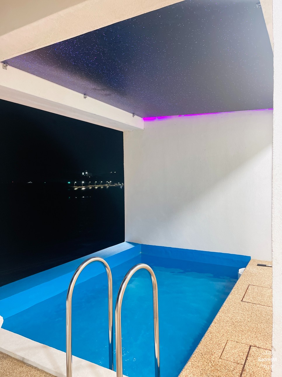 인피니티풀은 아니지만 바다뷰로 인해 그런 느낌이 충만한 수영장. 바다를 보며 수영을 즐길 수 있어 아이도 엄청 좋아했는데, 저녁엔 은은한 별 조명으로 더 로맨틱한 분위기 연출이 가능하다.