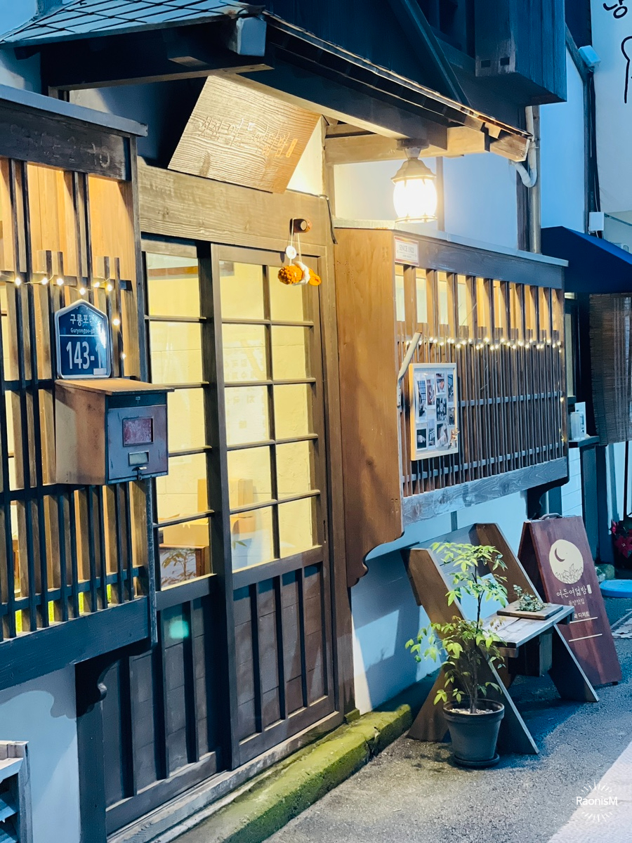 어둠이 내려앉은 계단의 풍경, 낮과는 또 다른 분위기 맛집이다.