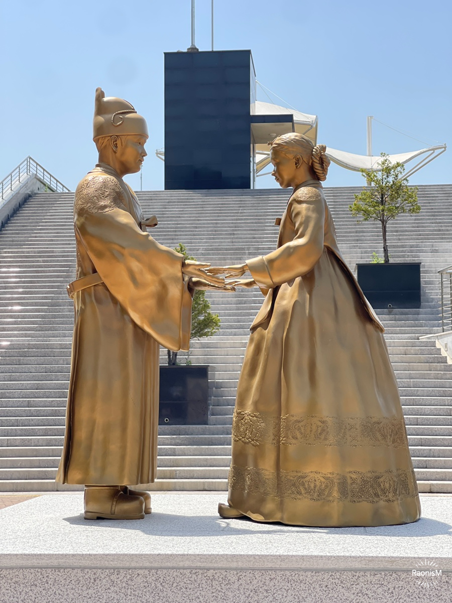 1452년 12살에 왕위에 오른 조선의 왕들 중 가장 정통성 있는 군주. 15살에 숙부인 세조에 의해 왕위를 빼앗기고, 영월로 유배되어 사약을 받고 승하한다. 단종의 비인 정순왕후는 1454년 혼인을 통해 왕비가 되었지만, 단종의 죽음 이후 평생을 수절하며 생을 살다 1521년에 숨을 거두었다. 그들의 못다한 사랑을 이루게 해주고픈 영월군민들의 뜻을 모아 동상을 세우게 되었다고 한다.