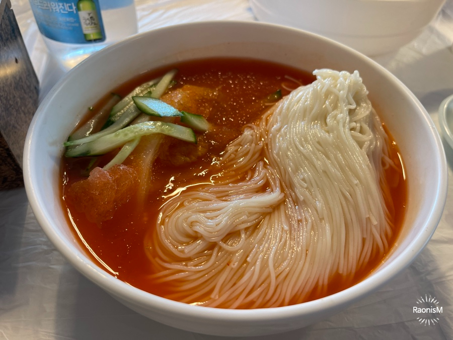 비빔국수를 같이 시켰지만, 시원한 동치미 국수로 추천하고 싶고 무조건이다!. 맵찔이는 도저히 불가한 매운맛의 비빔국수는 약간 짠기도 느껴져, 더울때 아주 제격이고 시원한 동치미 국물이 일품인 국수를 무조건 먹어야 한다고 말해주고 싶다.