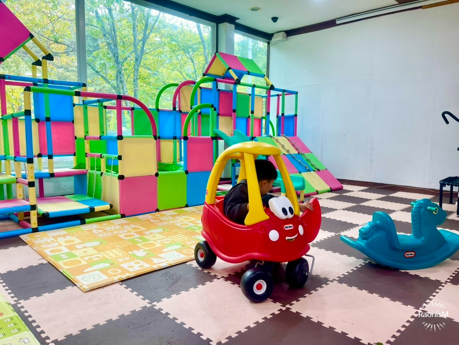 놀이방에는 아이들이 뛰어놀 수 있는 장난감과 책이 준비되어 있어요. 운영 시간은 오전 10시부터 오후 9시까지랍니다.