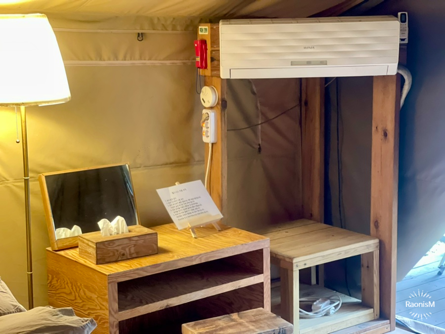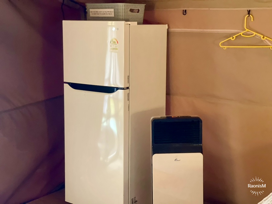 침구는 깔끔하고 포근하다. 트윈베드로 준비되어 있어 4인 가족이 방문해도 편하게 잘 수 있다. 냉장고, 에어컨, 온풍기가 갖춰져 있어 덥거나 추운 날씨에도 걱정 없답니다. 필요한 조리 도구와 일회용품은 기본적으로 제공한다.