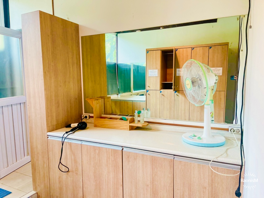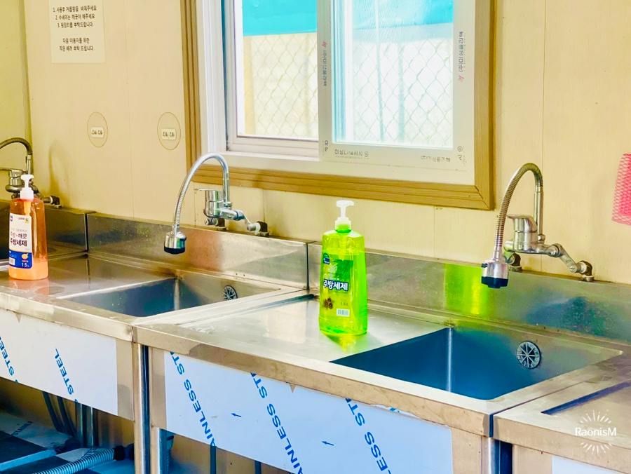 깔끔한 공용 개수대와 화장실, 샤워실까지 준비되어 있고, 따뜻한 물도 바로 나올 수 있도록 되어 있어 편하다.