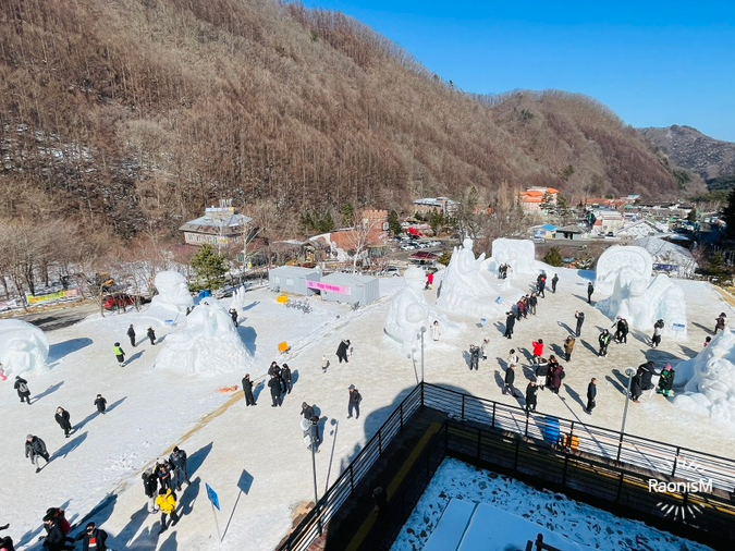 국내외 아티스트와 대학생들이 참여해 만든 대규모 눈조각 전시가 펼쳐진다. 야간에는 조명 효과로 더욱 환상적인 분위기를 자아낸다.