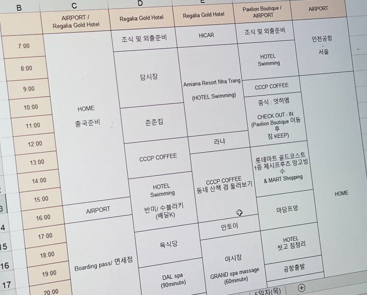 - 항공권 : 저녁 7시 출발 → 현지 도착 22:30