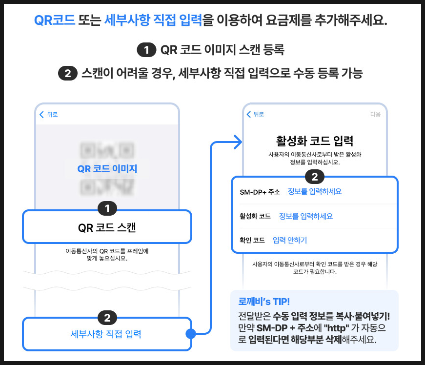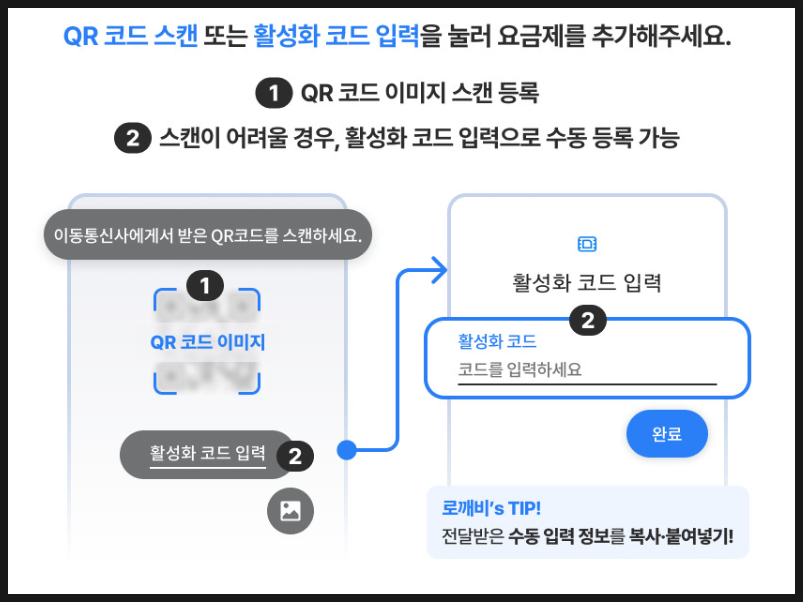 - 복잡한 개통 절차 없이 QR 코드 스캔만으로 개통