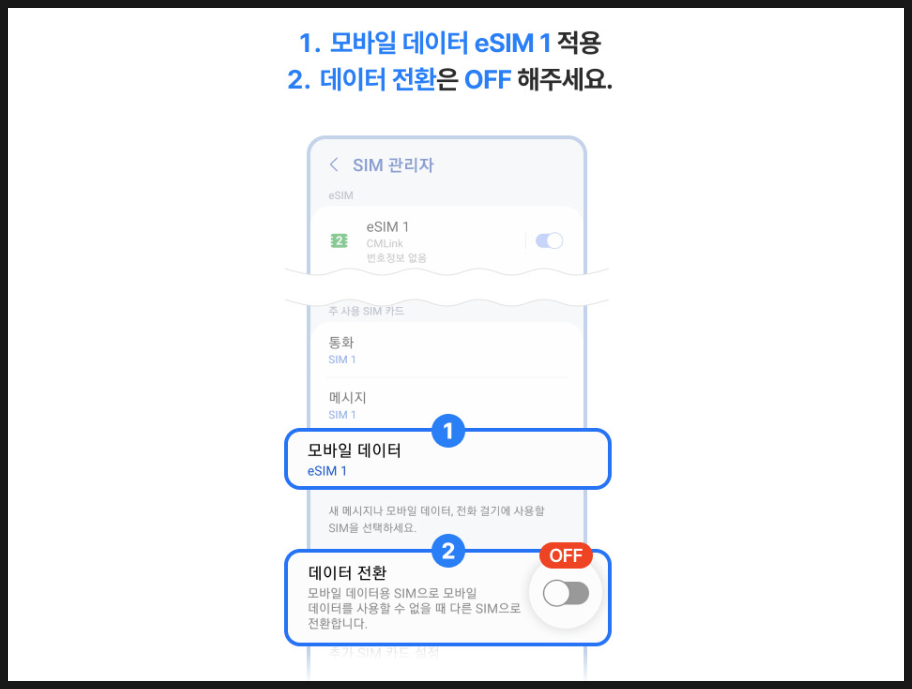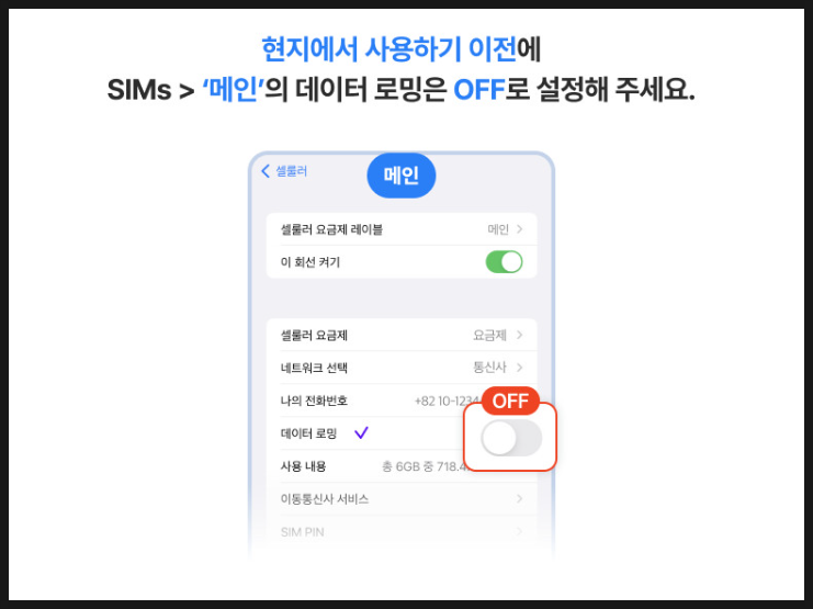 - 도착 후 '여행용'으로 데이터 설정 변경