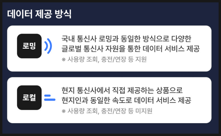 | 속도 | 글로벌망 | 현지 통신망 (빠름) |