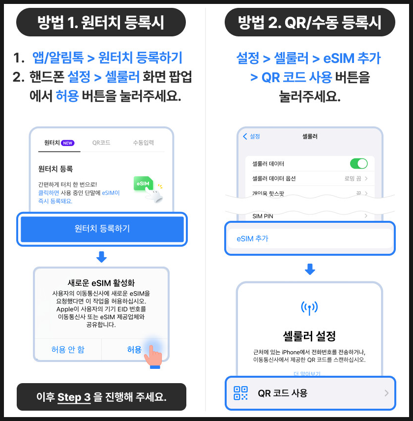 "eSIM 설치 어렵진 않을까?", "유심보다 진짜 편할까?"