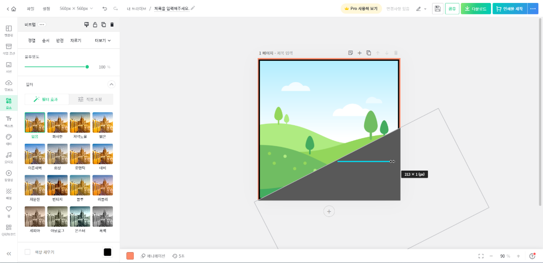 - 전부 완성했으니 이제 '다운로드' 받으면 된다. 우측 상단의 '다운로드'버튼을 눌러 '고해상도 다운로드'를 선택한 후 원하는 위치에 다운 받도록 하자.