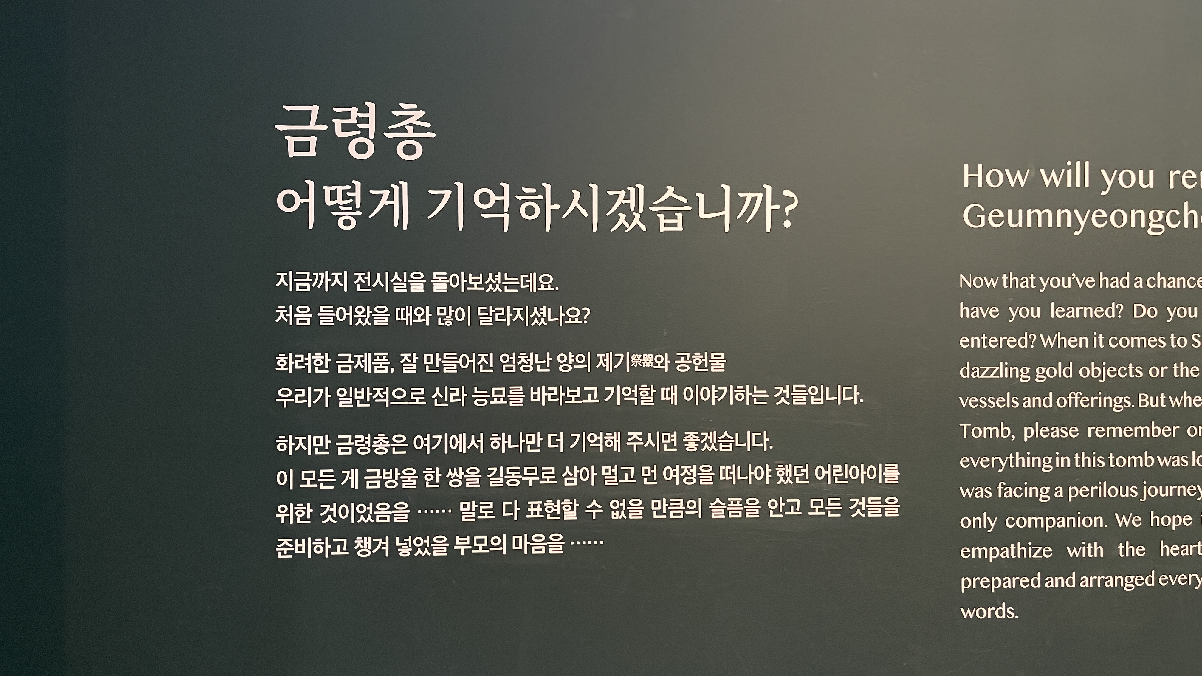 벽면에 흘러나오던 영상 역시 그냥 금령총과 관련된 영상이겠거니 하며 흘려보았는데.. 사실을 알고 나서 다시 돌아보니 영상 장면 하나하나가 너무 가슴아픈 얘기였다. 아이를 가진 부모라서 더 그런걸까.. 괜히 마음이 동화하여 그 슬픔이 느껴지는 것 같다.