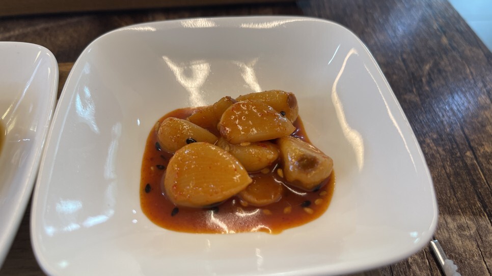 국밥요리에 마늘장아찌는 찰떡 궁합이다. 전복육개장을 먹는 내내 젓가락이 계속 가는 반찬이다.