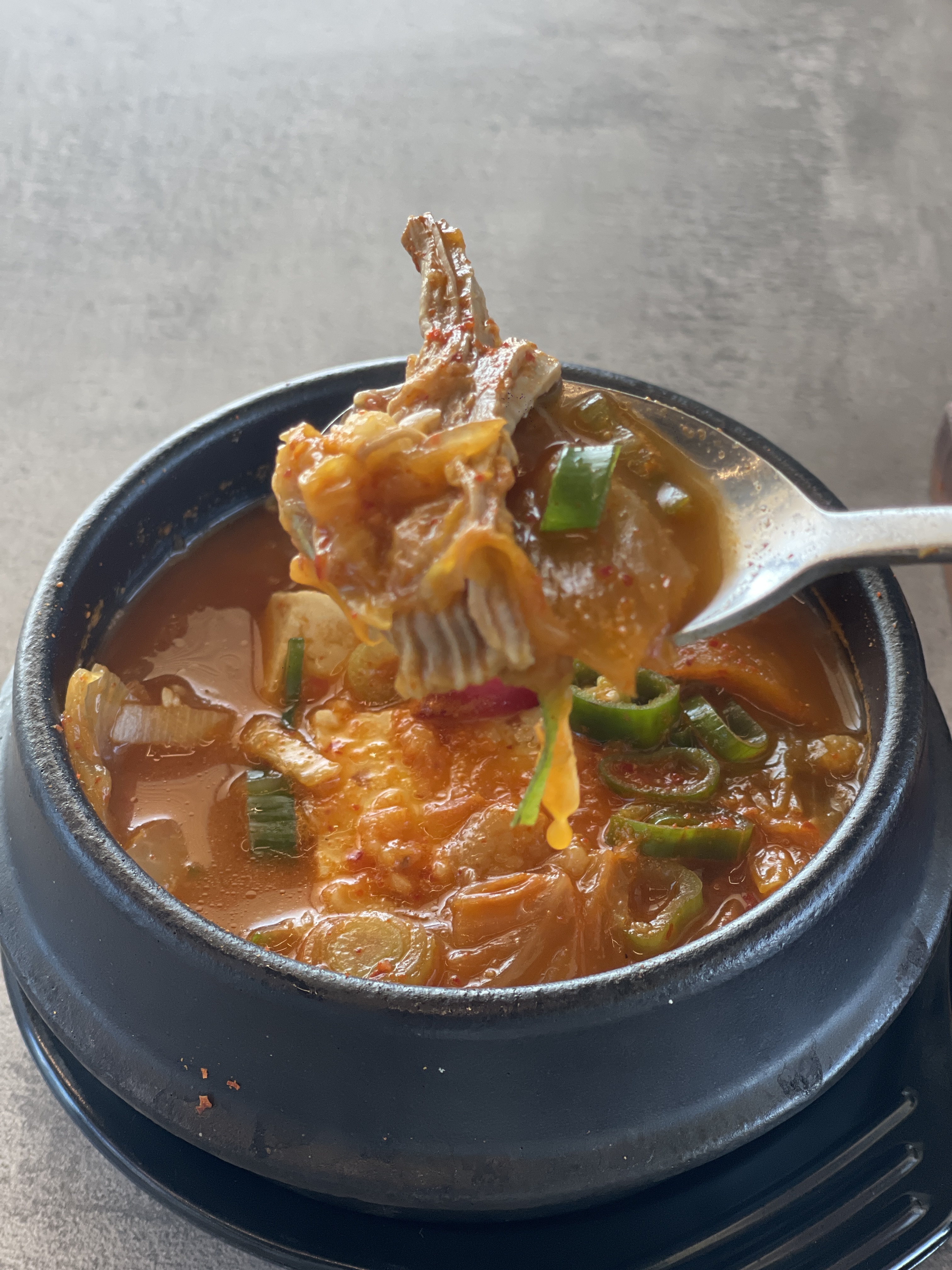 제육볶음까지 비워졌지만, 아직 배는 고픈 상태! 그렇다면! 공기밥을 추가해야 하는데, 아쉬움이 많이 남아 밑반찬과 더불어 제육볶음과 김치찌개까지 추가 주문을 했다. 청국장 맛을 보니 김치찌개도 분명 맛있을 것 같은 확신이 들었다.