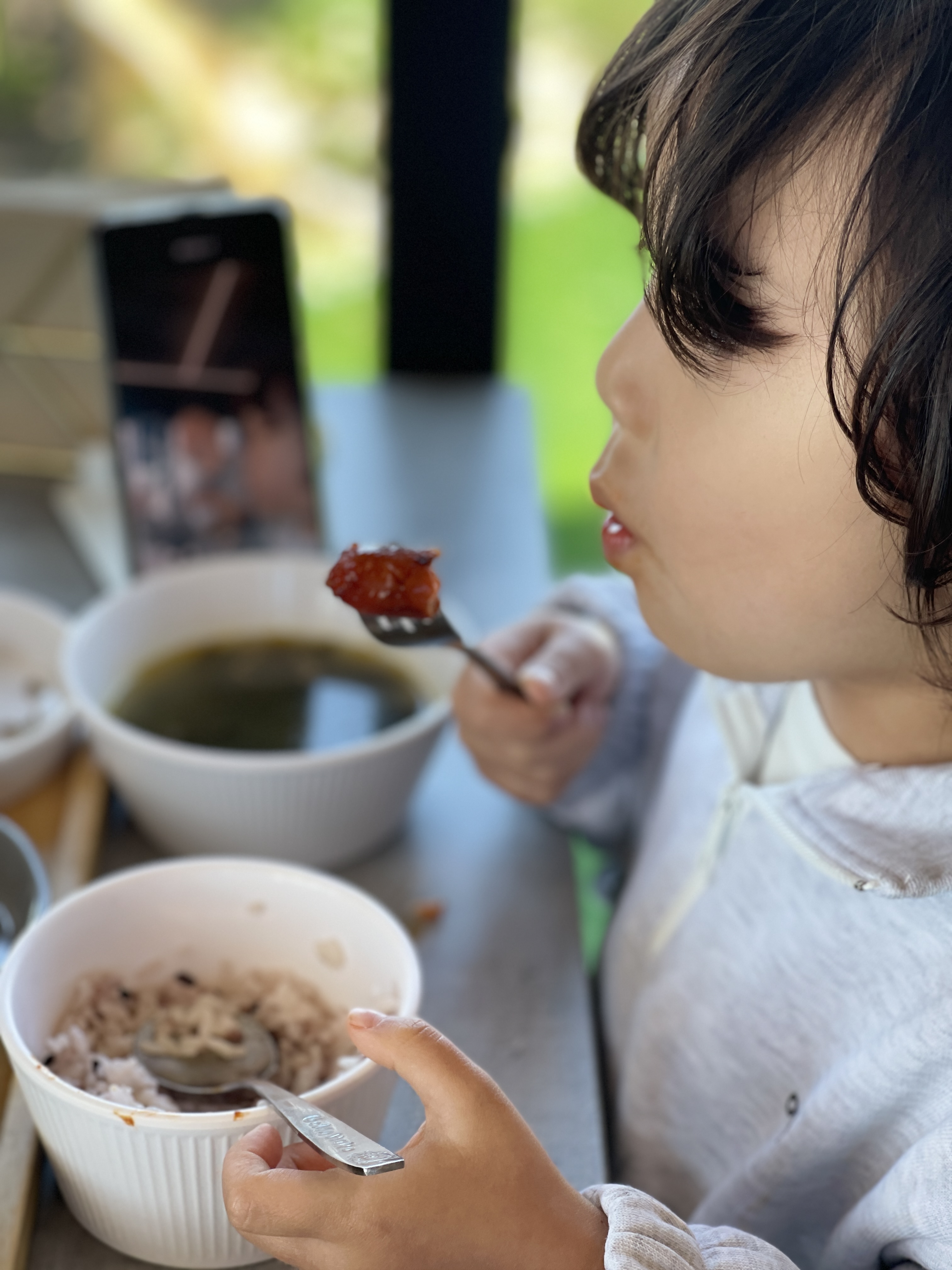 비엔나소시지가 살짝 매콤한 맛이 감도는데, 그래서 더 좋은 것인지 벌써 밥 반공기를 비우고 있는 라온. 맵다면서도 너무 잘 먹어서, 와이프가 비엔나소시지 반찬을 해주겠노라며 약속을 해 본다.