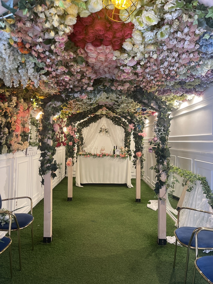 화사한 꽃으로 장식된 A 스튜디오에서 부케를 부여잡고 포즈를 취해본다.