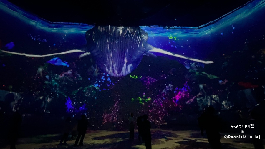 커다란 고래가 유영하는 영상이 흘러나온다.